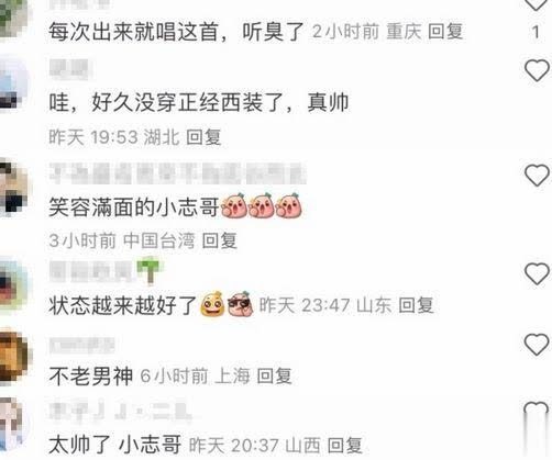 网友纷纷留言:“好久没穿正经西装了,真帅。笑容满面的小志哥。状态越来越好了。不老男神。太帅了,小志哥。”